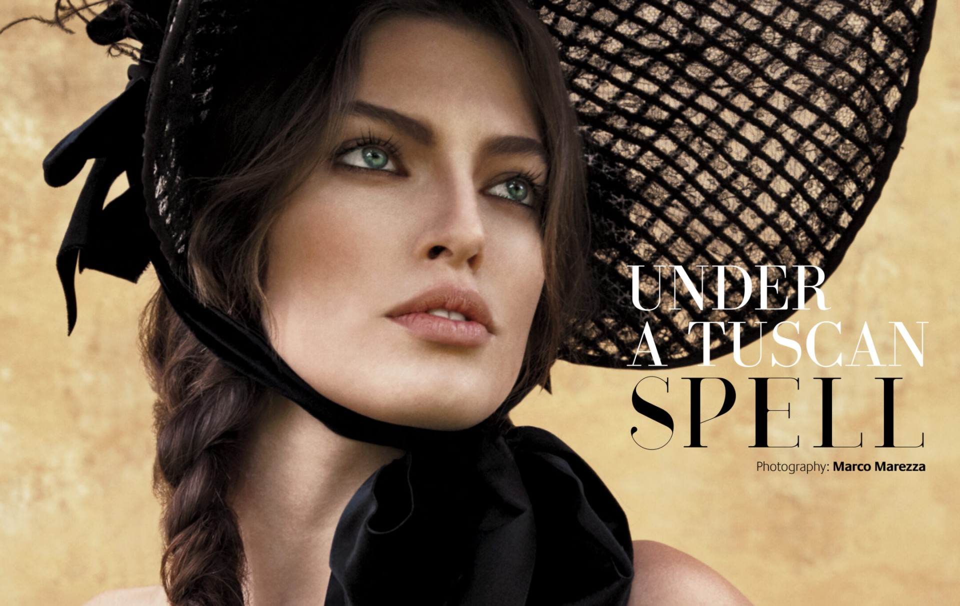 Photography: Marco Marezza; Production: L Group Productions; Fashion Director: Tracy Trouf; Stylist: Santa Versace Bevacqua at L&A Artist/L Group Productions; Assistant Stylist: Federica Salto; Hair: Stefano Gatti; Makeup: Sonia Veleno at L&A Artist/L Group Productions; Photography Assistant: Federico Laddaga; Location: Il Palagio, Tuscany, ItalyLocation: Il Palagio Tuscany, Italy; Gown: Victor Harper Couture; Crinoline: La Nuova Sartoria; Hat: Sands