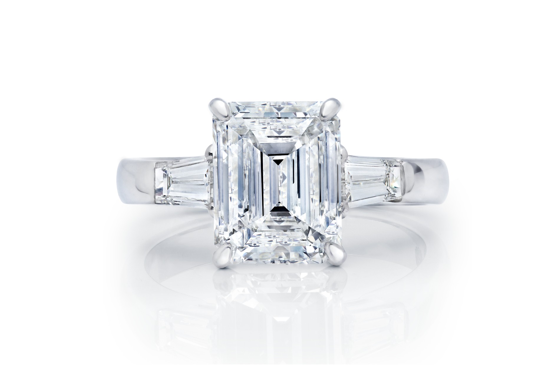 1. Harry Winston Tryst Emerald-Cut Diamond Ring set in Platinum. 2. Harry Winston Diamond Ring set in Platinum. 3. Harry Kotlar Classic 9ct Round Brilliant set in Platinum.