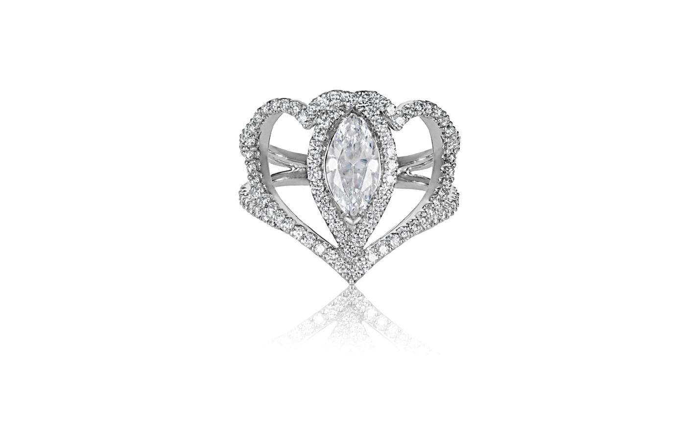 The Perspective Kollection includes contrasting geometric shapes as halos to transform the look from something very traditional to something a bit unexpected. The Arch Kollection is romantically inspired by curves and archways of cathedrals seen throughout Paris. All are available in 18-karat white and yellow gold as well as platinum through sayyeswithkarl.com. Combining the ideas of love and harmony, a Limited Edition engagement ring was recently unveiled, encapsulating Karl Lagerfeld’s vision for this fine jewelry line. “You have to feel what a woman wants. It’s like a game, a challenge.” With this sentiment in mind, the exclusive Les Coeurs Entrelaces (The Interlaced Hearts) features the outlines of two intertwined diamond hearts, which encompass a marquise shaped center stone.