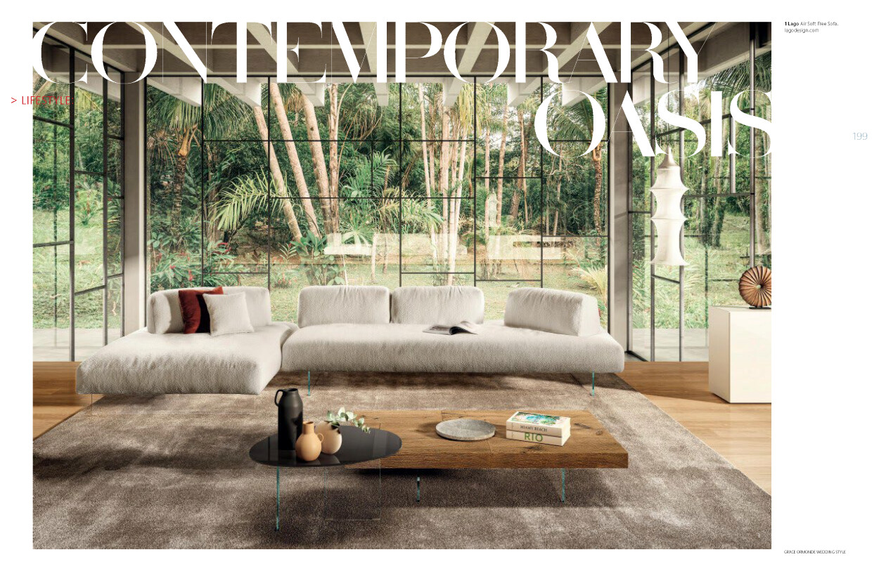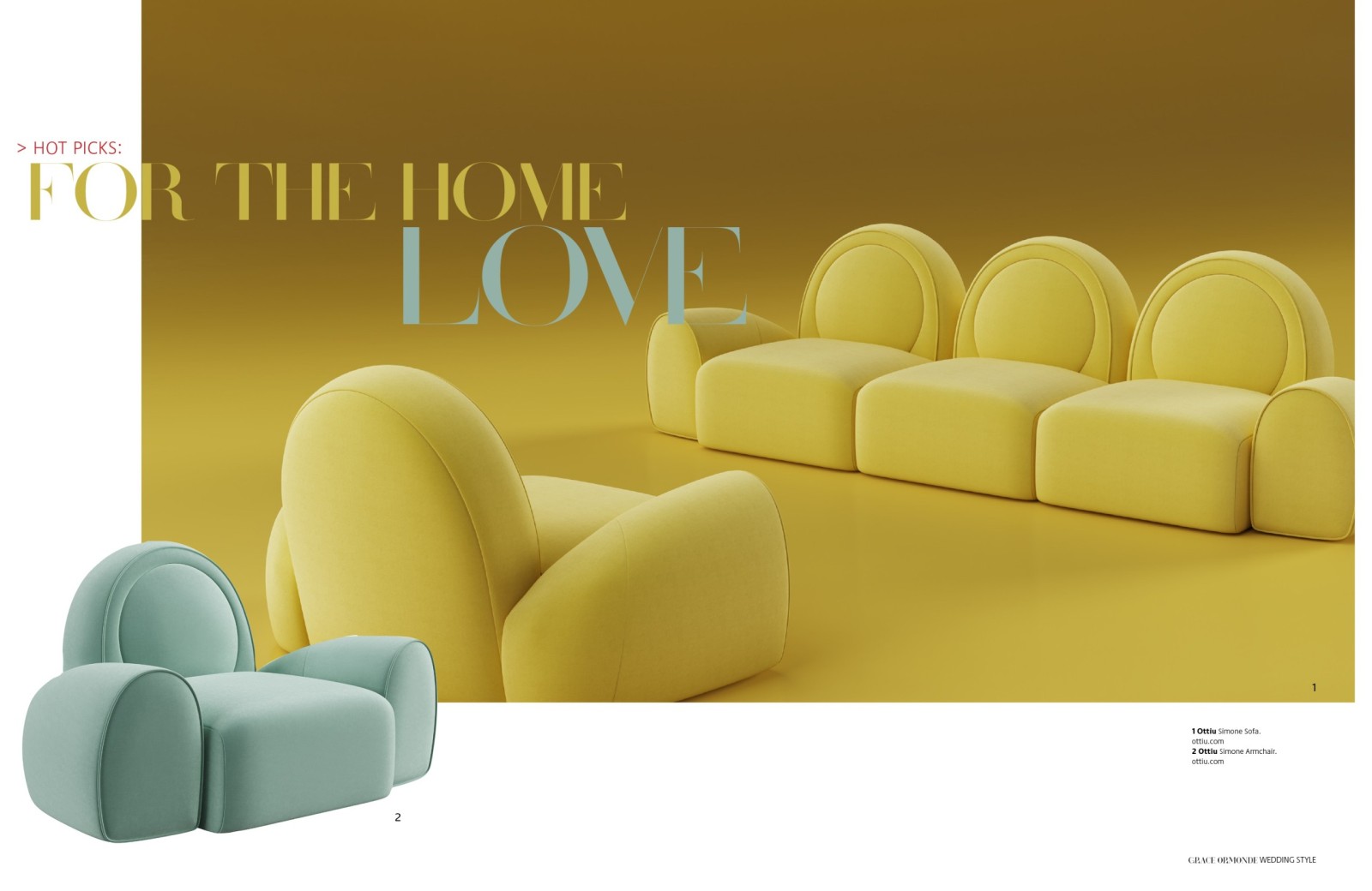1 & 2 Ottiu Simone Sofa and Armchair. FOR THE HOME – LOVE1 William Yeoward Crystal Flavia Glassware. 2 Georg Jensen Sterling Silver Pitcher 1052. 3 Raynaud Cristobal Émeraude Dinnerware. 4 Raynaud Cristobal, Marine Dinnerware. 5 William Yeoward Crystal Fern Glassware. 6 William Yeoward Crystal Tara Decanter. 1 Ottiu Romy Sofa. 2 McLaren and TUMI Aero Rolling Trunk. 3 McLaren and TUMI Aero Extended